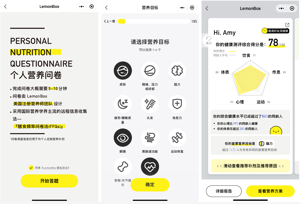 后疫情时代,健康产业的大热为关联领域带来巨大机遇。据艾媒咨询报告显示,2021年中国保健品行业市场规模有望达到3300亿元,除银发群体外,青年人群购买保健品人数正日益增加。但日常忙碌的青年消费群体在挑选时往往无所适从,需要科学的营养建议来协助选择合适的保健品。2019年上线的定制维生素DTC品牌LemonBox,以独特的品牌风格+更优的消费者体验,已累计帮助超100万用户定制私人营养方案,并借助数据和技术应用使用户更具粘性。在快速崛起的背后,是LemonBox从创立之初便确定的腾讯生态强投入策略,将微信作为原生态服务型平台,直面消费者提供专业服务,成功打造“全球优选+定制化体验”模式,成为国内市场的增长范本。LemonBox CEO & 创始人翁斌斌认为:“通过更好的服务和体验为用户创造价值,将会是新一代品牌的核心壁垒。LemonBox的品牌愿景是通过技术和数据赋能‘私人营养师’,细致、快速且规模化地服务追求健康生活的用户,而微信生态将我们的愿景落为现实。”在微信生态内乘风破浪的“爆款柠檬”,究竟凭借哪些动作快速圈粉?在提供定制方案前,LemonBox会通过简便快速的方式,了解消费者的营养目标和生活习惯。微信生态内小程序提供了与消费者首次建立联系的理想平台,被LemonBox打造为用户的“专属AI营养师”:用户可轻松地通过小程序里的“个人营养问卷”输入生活作息等信息,即可获得科学推荐方案和健康生活建议。科学营养团队将针对每位用户的实际需求,量身打造“每日营养补充包”等高质量产品。同时,LemonBox也会在官方公众号、视频号分享用户关心的保健品知识,注重推送直击用户痛点的内容,例如如何用高性价比的健康饮食提升生活质量等,为 “打工人”提供解决健康焦虑的方法,引起情感共鸣,激发其对保健品需求。在宣传产品的同时强调了“定制维生素”的重要性与必要性,进一步实现消费者教育。LemonBox将自身定位成一个由数据驱动算法的科技公司,品牌拥有强大数据、技术能力:算法技术团队与营养师配合,将营养学研究成果转化可服务个人营养问卷的量化标准,已收集超过100万份用户问卷数据并自建智能数据库和用户看板,可以精准结合用户痛点及使用场景进行人群定位,配合投放测试进行精准以及快速的人群测试;人群及消费者调研团队,可根据测试及用户调研的结果快速反馈、复盘和总结,提供准确的罗卡关键词和人群定向提取,赋能效果投放。秉持着“用户为本”的核心理念,LemonBox严控品质,基于国际最新的营养研究成果优化算法,挑选北美优质生产商供应产品,建立高标准的分装中心,并依托严谨的大数据算法和营养学知识赋能营养,确保每一环节都建立在坚实的科学基础上,让用户拥有更安心的产品体验。